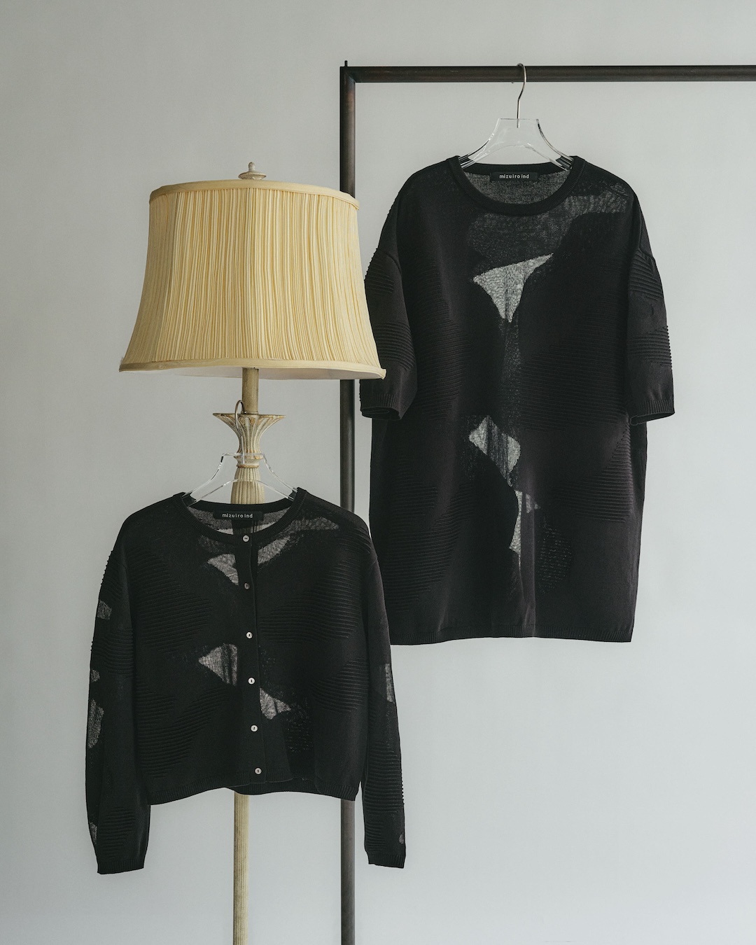 立体的な編み地と透け感のバランスが美しい、柄編みのカーディガン&チュニック。