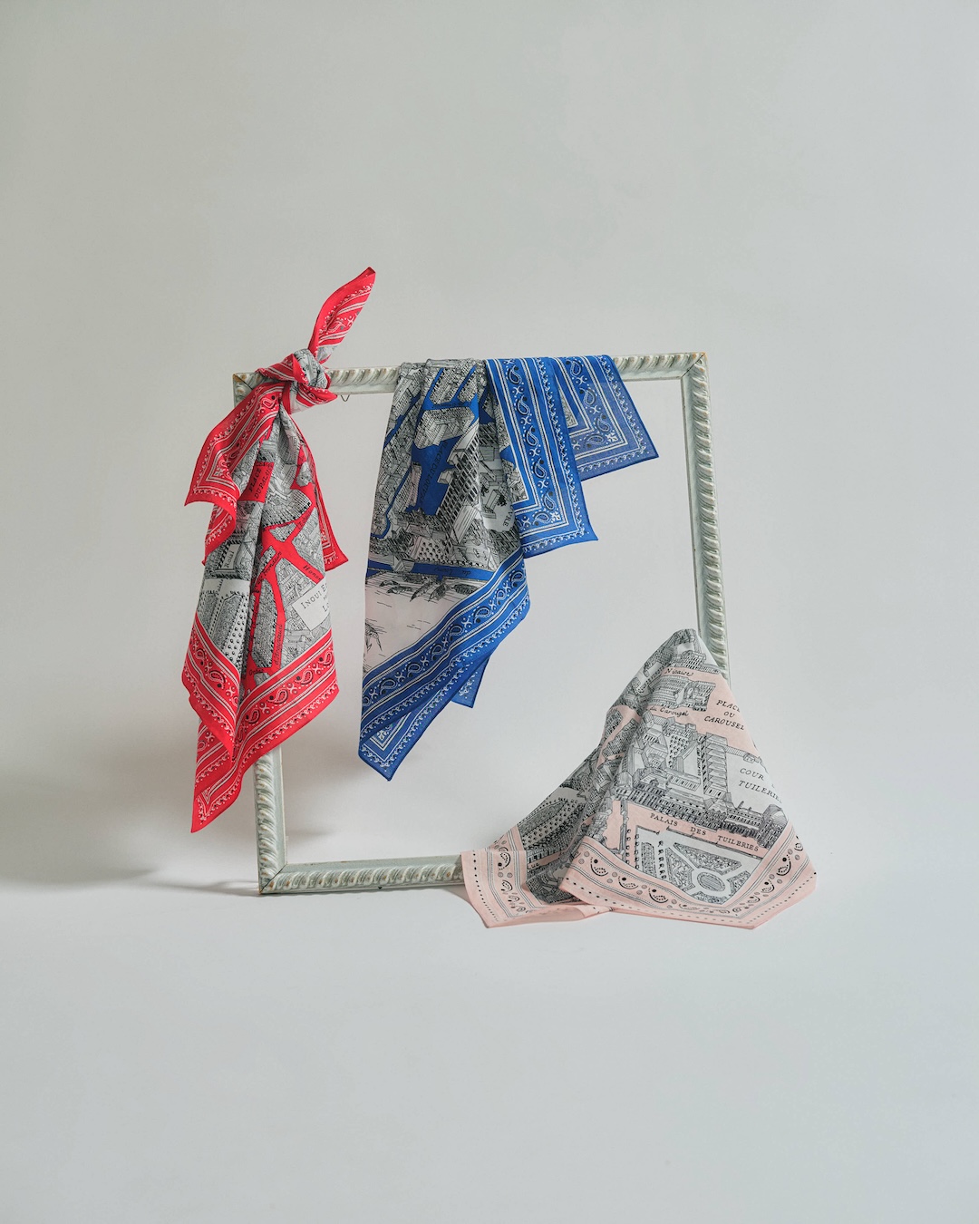 動物や植物、風景などを独自の視点で描いたアートのようなスカーフやストールを展開し、パリの著名メゾンとのコラボレーションを経て、世界中のファッショニスタから注目を集めています。